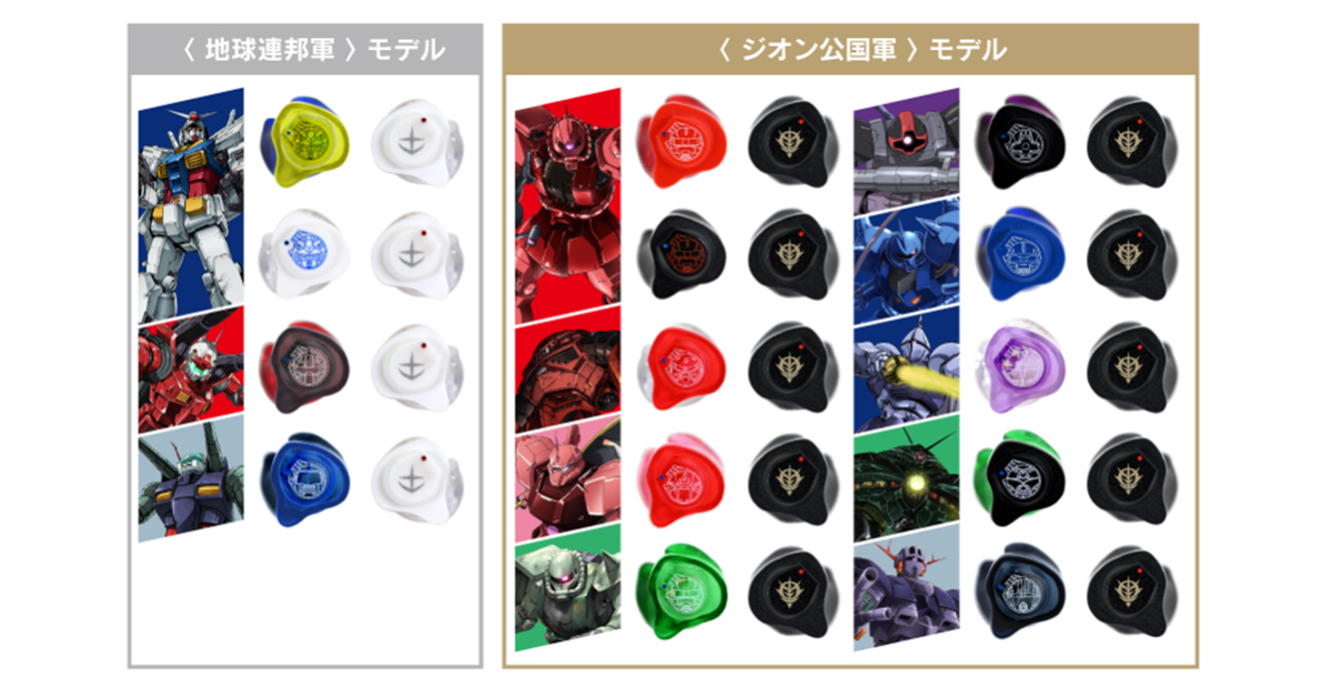 右耳外殼圖案為各軍固定樣式,左耳圖案可自由選擇地球軍或吉翁軍。