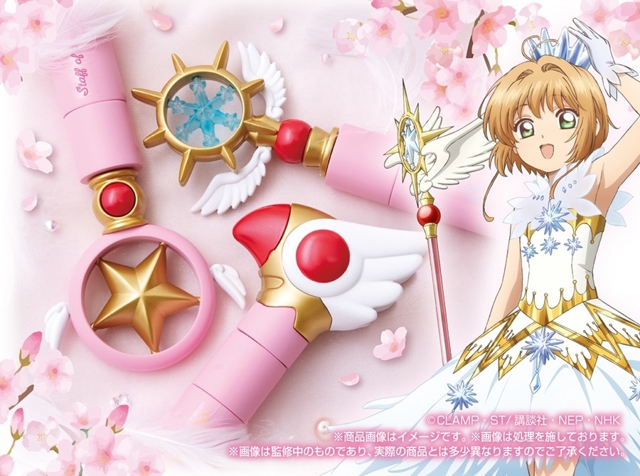 《庫洛魔法使》講述女主角木之本櫻為了阻止庫洛牌四處破壞,成為庫洛魔法使嘗試收回所有的庫洛牌的故事。隨著故事推進,小櫻所使用的魔法杖以及牌組也有所成長及變化,在每季新動畫推出時也一同推出多款不同的玩具!