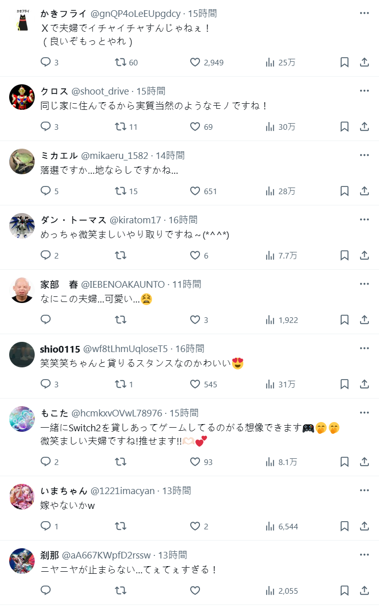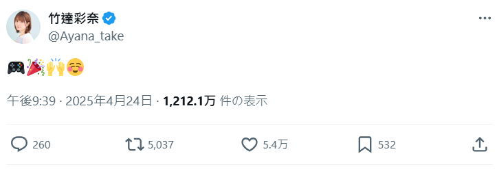 其中,也有中選引起話題的人,聲優竹達彩奈就興奮分享自己屏雀中選的好消息,不過趣味的是,老公梶裕貴卻沒有中選,兩人的互動也在 X 上受到關注,讓人看到 Switch 2 抽選甜滋滋的一面。