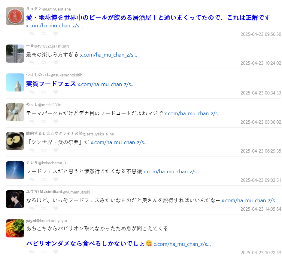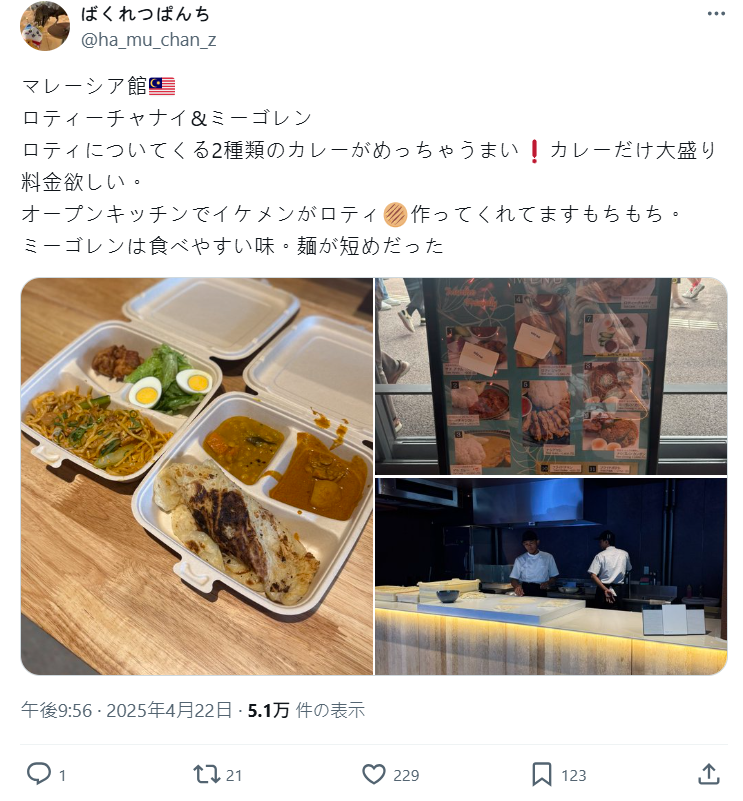 不少網友讚賞推主的用心跟行動力,能這樣子享受世博也是另有趣味的作法,看來到世博除了觀看各國的展覽外,真的能來一場美食國際巡禮。