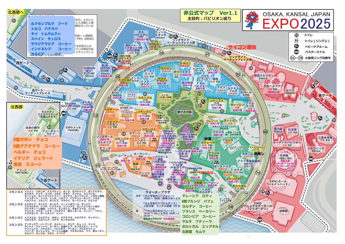 不過因為許多場館都必須預約才能進入,也有部分人到場才發現能參觀的地方有限,然而日本有位推主ばくれつぱんち(@ha_mu_chan_z)卻直接把這場國際盛會當成美食嘉年華來玩,還繪製了一張「吃貨專用地圖」,並搭配超認真食記引發熱議,網友直呼:「這根本就是全球國際美食祭!」