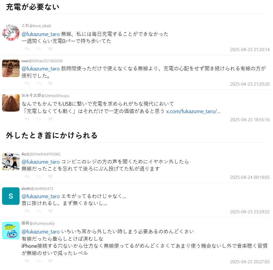 當然不論是有線還是無線,選擇自己用得順手的才是王道,各有各的擁護者也非常合理。至於到底日本是否無線耳機被貼上「文青」&「貧窮」標籤,或許可能也是因人而異,畢竟實際上有線耳機要價高昂的可不少,很難讓人想像跟貧窮連結在一起。