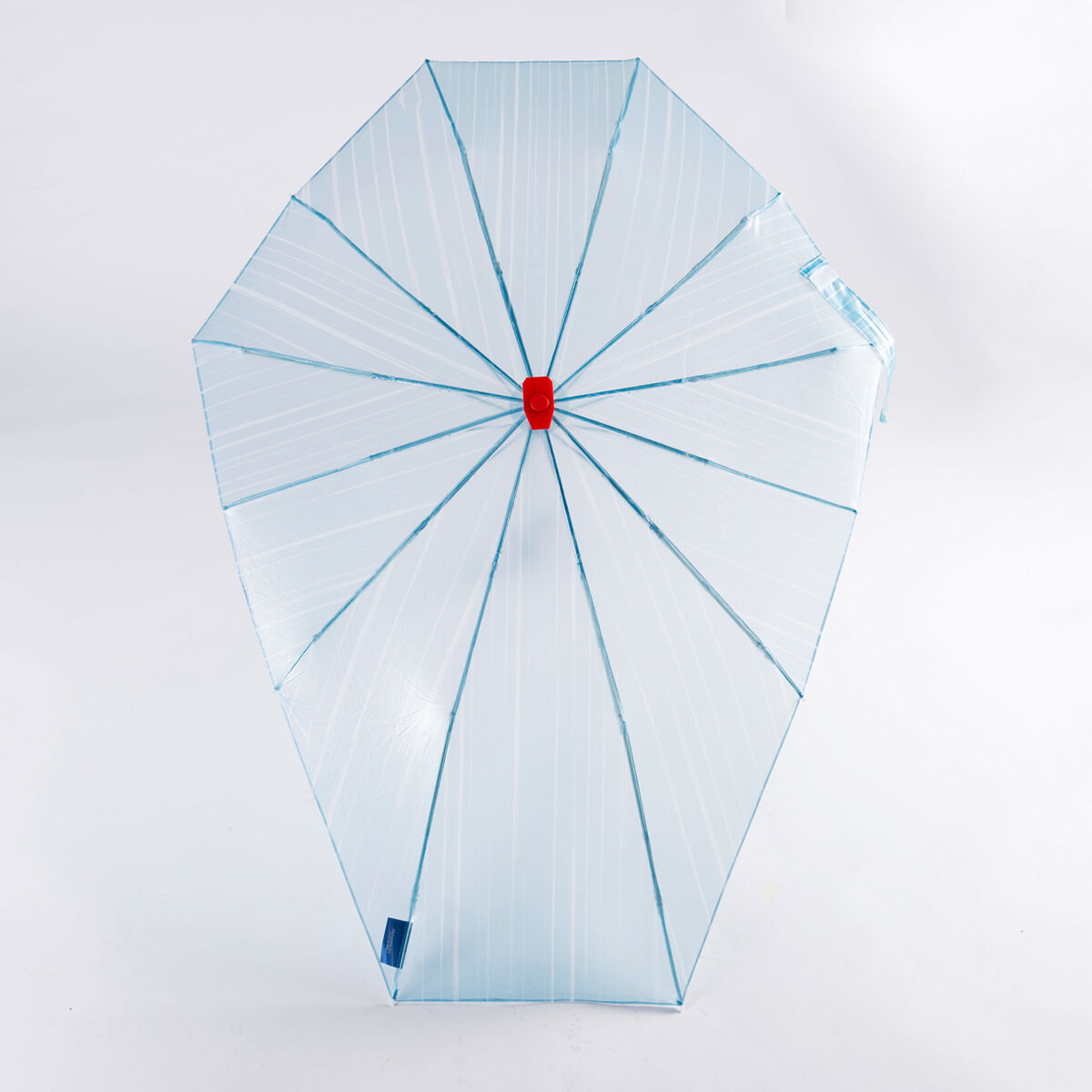 展開來就是完整的「光束盾」樣貌,兩側不同長短傘沿的設計也能有效讓持傘者不被滑下的雨水弄濕身體。