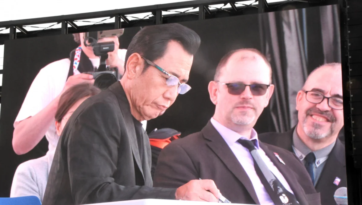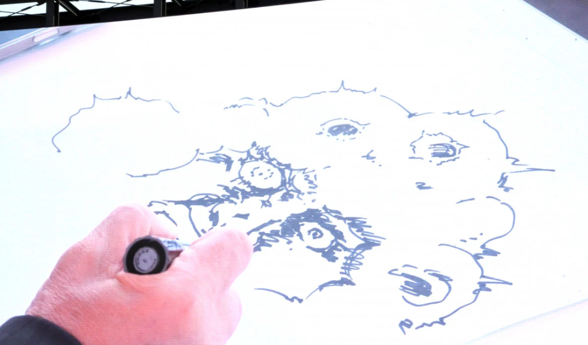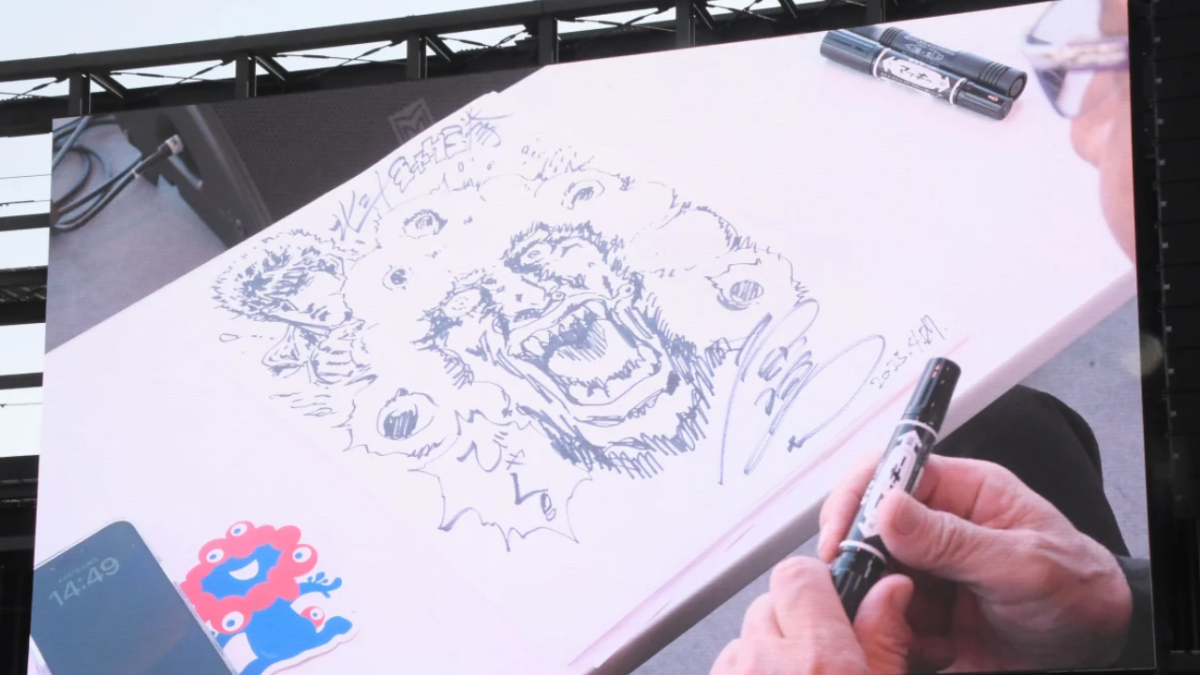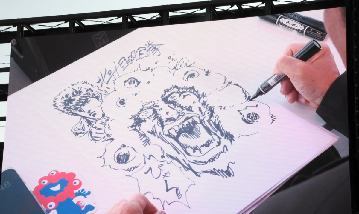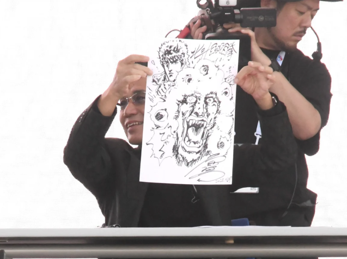 不過活動中有件趣事引起關注,有人請原哲夫現場簽名,他就默默拿起筆開始畫。結果畫面一放到大螢幕上,大家看到輪廓瞬間超震驚。原哲夫隨手畫出的,居然是《北斗神拳》的拳四郎跟大阪世博吉祥物「脈脈」的聯名圖,現場氣氛直接引爆,掌聲不斷!