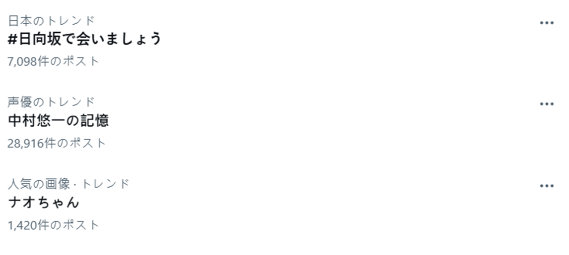 ▼ X 趨勢在晚間也出現「中村悠一の記憶」。