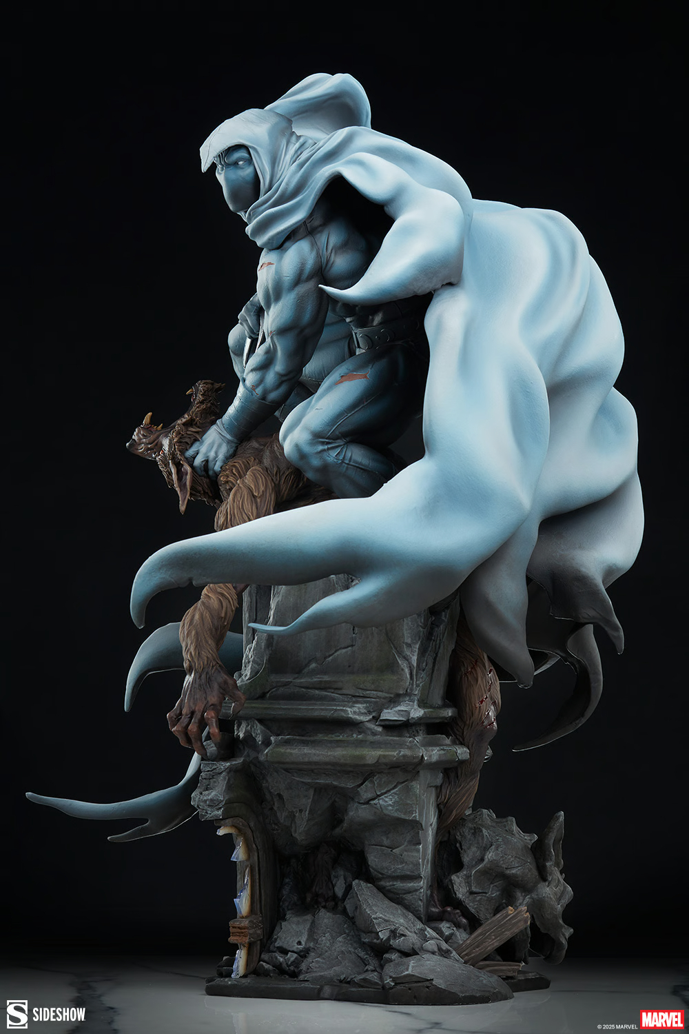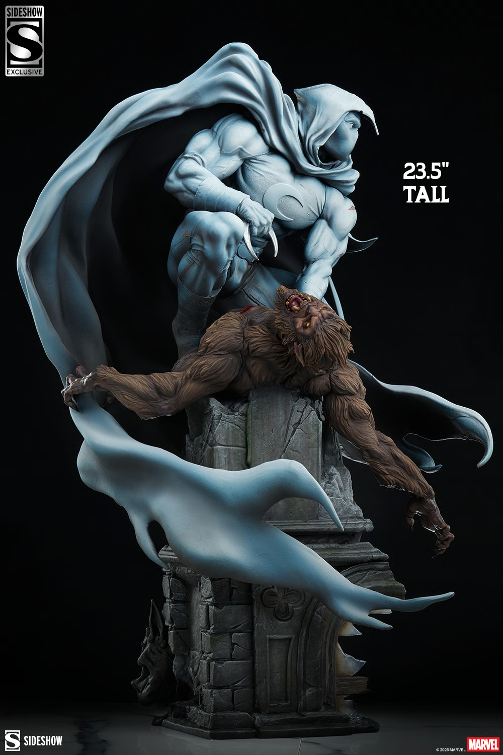 本作高約 59 公分,展現出月光騎士與暗夜狼人(Werewolf by Night)這兩位與月亮有關的超人類角色大戰的場景,只不過,今晚的勝利者明顯屬於孔蘇之拳(Fist Of Khonshu)!呈現蹲姿的月光騎士左手掐著暗夜狼人的咽喉、右手持握月光迴力鏢,緊貼軀體的白色戰衣顯現出極為壯碩的肌肉線條,搭配飛舞的披風,散發強烈威壓感!同時也能從服裝的多處破損感受到這場戰鬥的激烈程度。