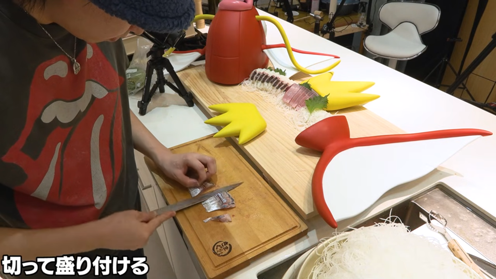 近日他與日本千萬訂閱料理YouTuber Kimagure Cook (きまぐれクック) 合作,以他自製的黏土鯉魚王,搭配 Kimagure Cook 的手藝打造「鯉魚王生魚片姿造」,超級吸睛的效果吸引不少網民關注。