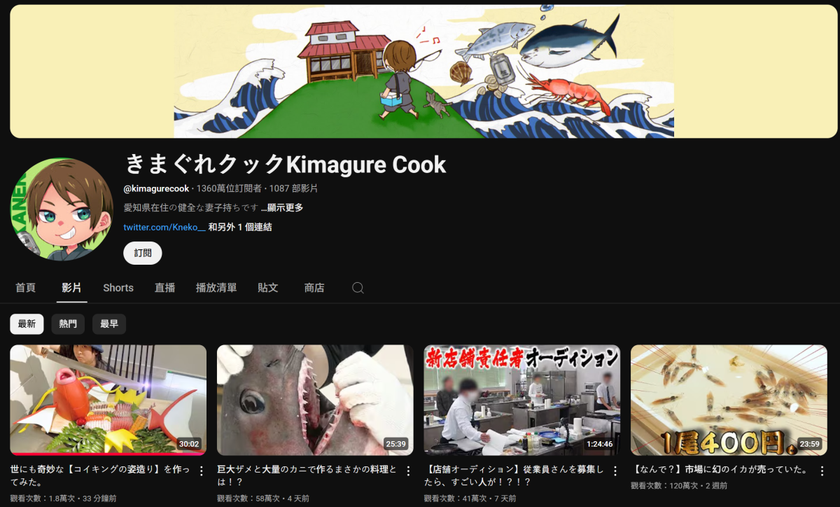 YouTuber Kimagure Cook (きまぐれクック) 擁有 1360 萬訂閱,時常在頻道分享料理、食材採買的影片,尤其幽默的談吐跟影片呈現,獲得非常多粉絲的喜愛。
