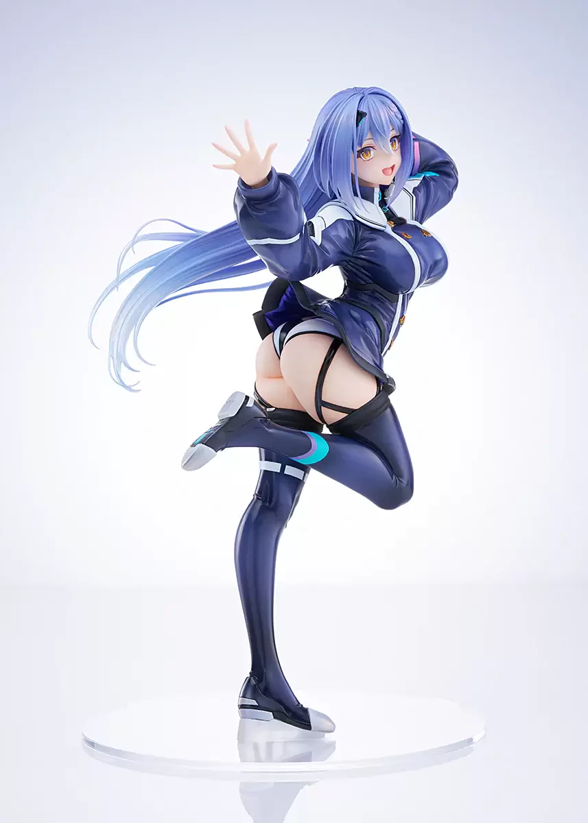 本次以 23 公分立體化的 PVC塗裝完成品是埃特拉本人以及操刀埃特拉形象設計的日本插畫家深井涼介共同監修,充分再現其人工超智慧(ASI)的未來美感!從完美凸顯上圍曲線的貼身服裝、頭部的髮卡,到具備絲滑感與光澤感的褲襪都細緻呈現,長髮不僅形塑出輕盈舞動感,髮絲末段的透明件更傳達出夢幻美感。當然,埃特拉最強美尻的圓潤線條跟擠壓出絕頂肉感的大腿肯定是最大賣點,讚到不行!