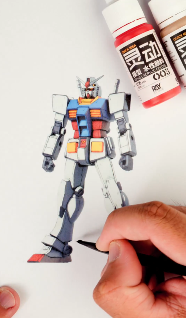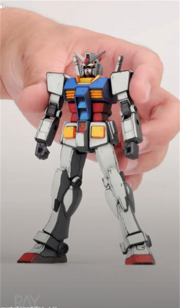 首先先看這則影片,可以看到他親手繪製一台初代鋼彈,從草圖、筆觸到上色都非常著越熟練,一張非常精美的鋼彈就這樣油然而生。沒想到,下一秒突然他突然就將這張圖拿起來了,變成一台幾乎跟剛剛繪圖一模一樣的鋼普拉,簡直像是變魔術一樣。