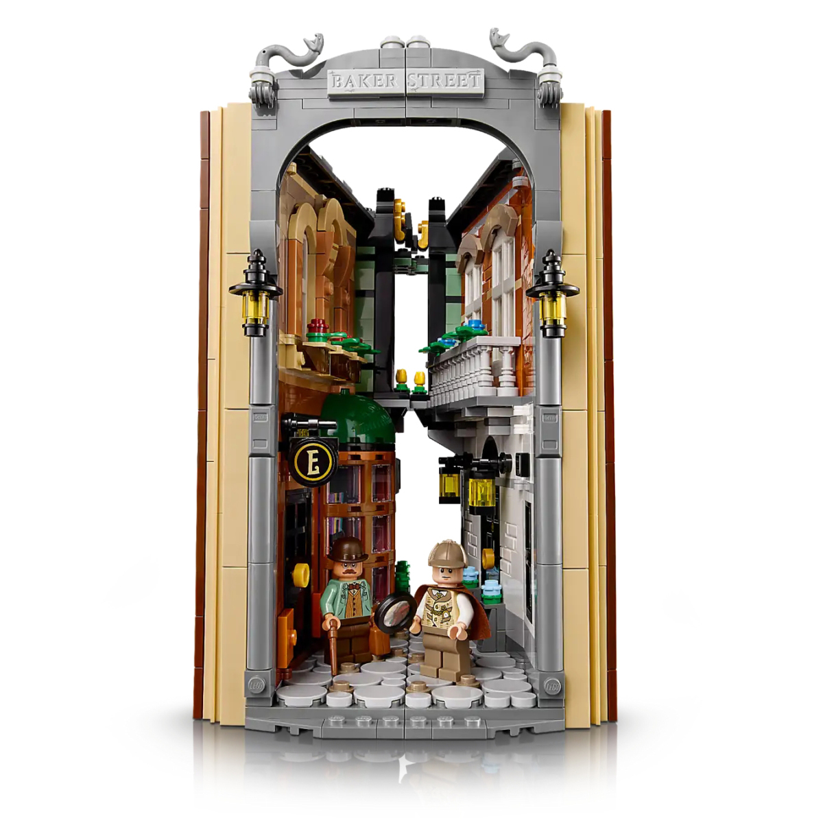 樂高這次將維多利亞時代的神秘倫敦結合書檔機能,使其變成一款具備實用性、佈滿隱藏機關的獨特建築!本作有 1359 片零件,組完高約 21 公分,展開後的長度則有 37 公分,福爾摩斯迷不僅可以把這款模型跟你收藏的偵探小說一起擺,還能享受到樂高設計團隊注入其中的豐富巧思,包含貝克街(Baker Street)街道、具備旋轉櫥窗的書店與隱藏其中的藍色石榴石、福爾摩斯的 221B 公寓與精美的線索版,以及福爾摩斯與宿敵莫里亞蒂教授決鬥的萊辛巴赫瀑布(he Reichenbach Fall)畫作等。
