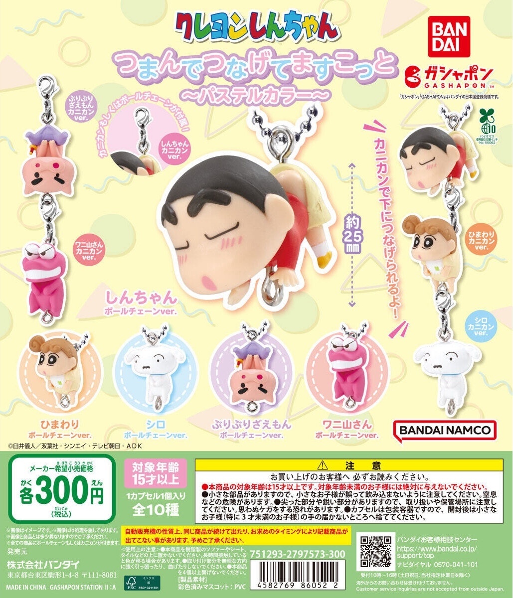 日本萬代公司轉蛋事業部 GASHAPON 將推出國民動畫《蠟筆小新》主題的新商品——「《蠟筆小新》拎起來吊飾~粉彩色版~」轉蛋,參考售價為每轉300日圓,預計於 2025年05月第一週開轉!