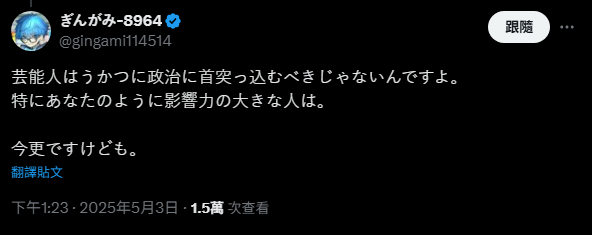 「藝人不應該輕易插手政治,尤其像您這樣有著巨大影響力的人。」