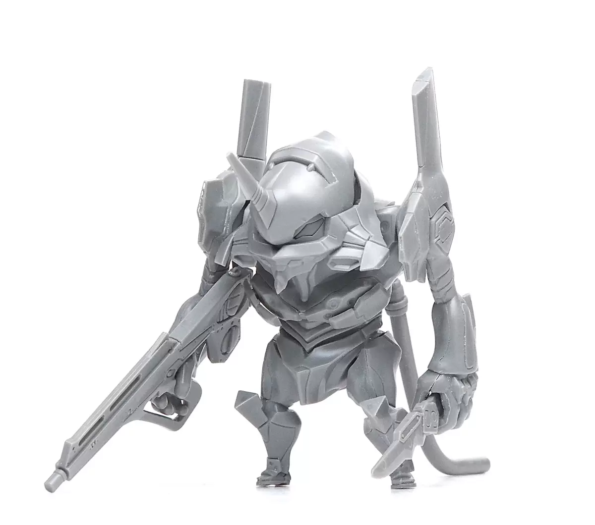 此次發表的新商品「EVANGELION初號機」由以《陸上自衛隊07式 Ⅲ型戰車 Nacchin》系列聞名的日本機械設計師 moi(Moino) 擔任風格設計,將初號機製作成頭大腿小的圓滾滾風格,同時也透過充滿銳利感的零件,保留了原作中特徵的拘束器(裝甲)細節造型。