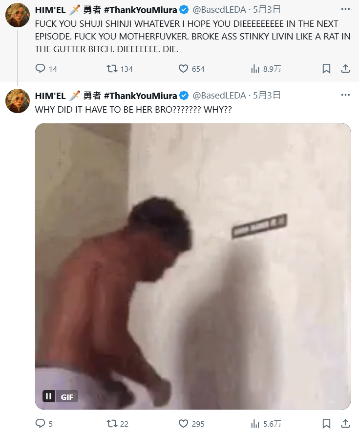 不只一篇,可說是連續的崩潰發文,完全感受的到他入坑的動機居然在動畫中一話就消逝的苦 QQ。