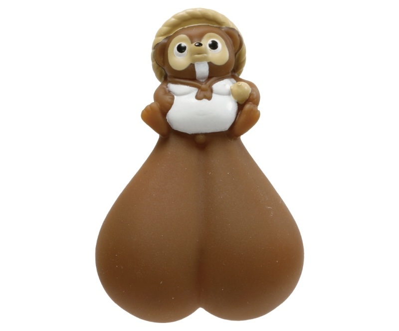 「按狸貓蛋蛋」轉蛋,強調『狸貓的蛋蛋,八疊榻榻米(狸の金玉 八畳敷き)』的俗語,使用柔軟的軟膠材質製作,呈現狸貓蛋蛋比身體還大的滑稽造型,按起來還有Q軟的手感♪收錄有四種顏色:栗棕色、白茶色、山吹色、鶯色,相當繽紛可愛!常按還能帶來金運~讓人忍不住想轉一顆來捏捏看?