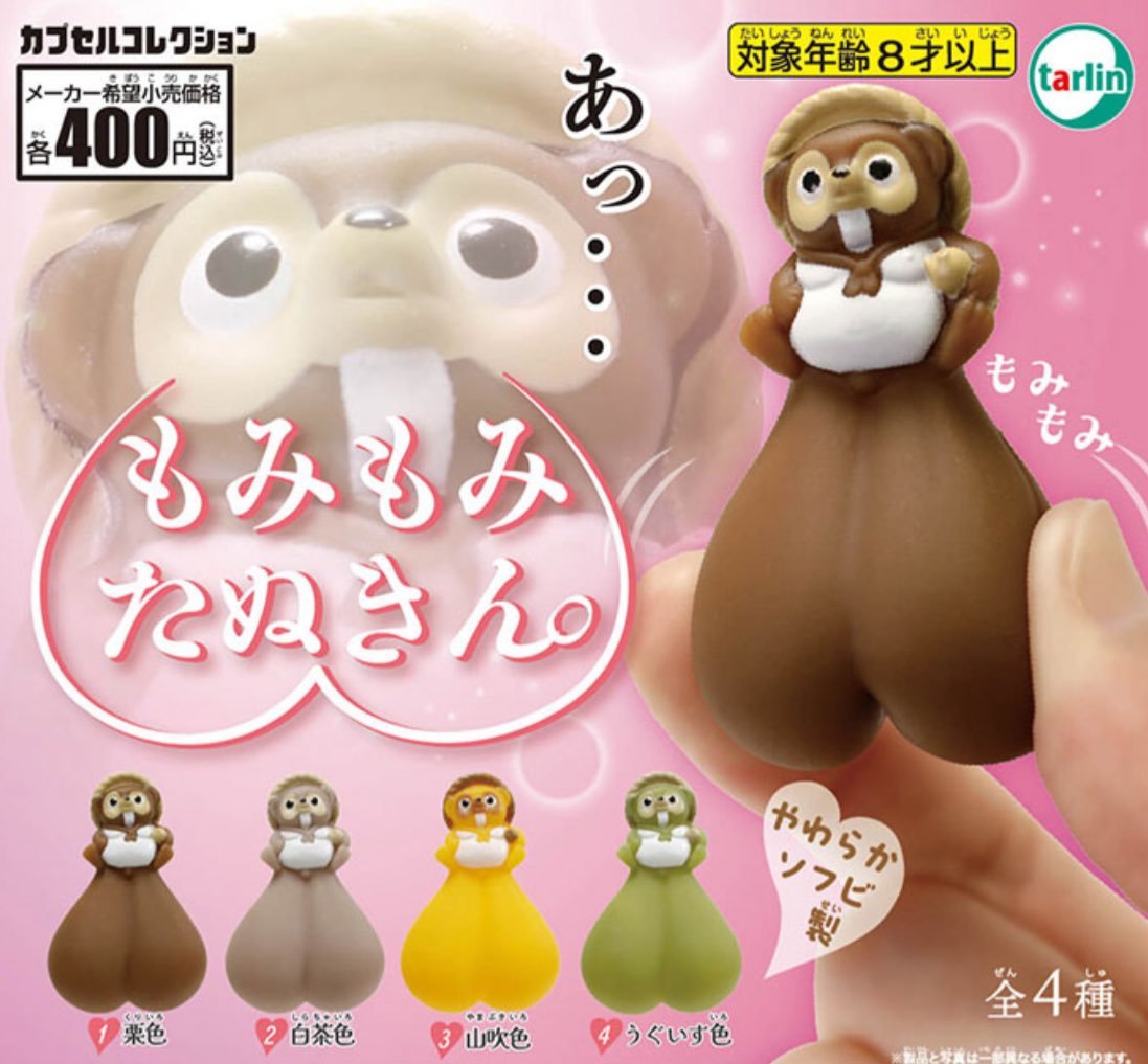 發行許多話題商品的玩具品牌 株式會社 Tarlin International (前 EPOCH 轉蛋事業部),推出最新的搞笑商品:「按摩狸貓蛋蛋(暫譯,もみもみたぬきん。)」轉蛋,共有四種款式,參考售價為一轉 400 日圓,預計將於 2025 年 05 月開轉~