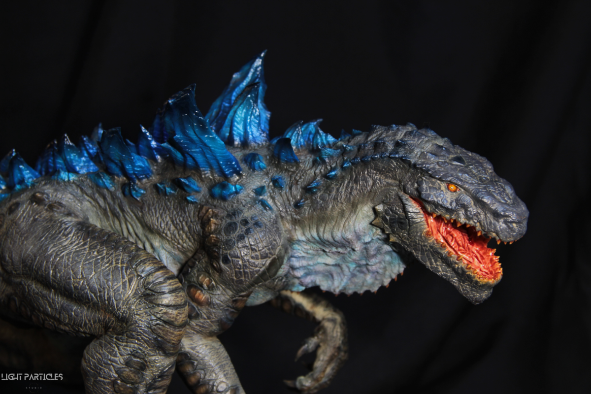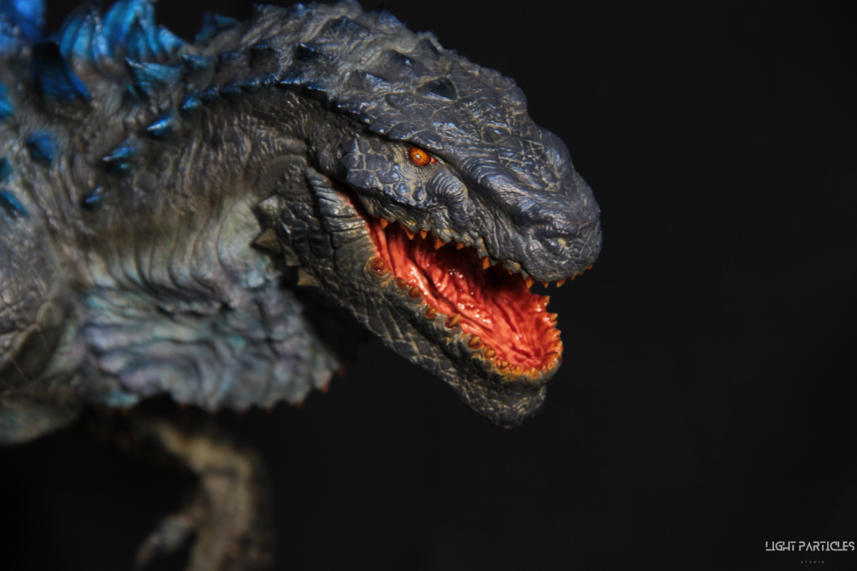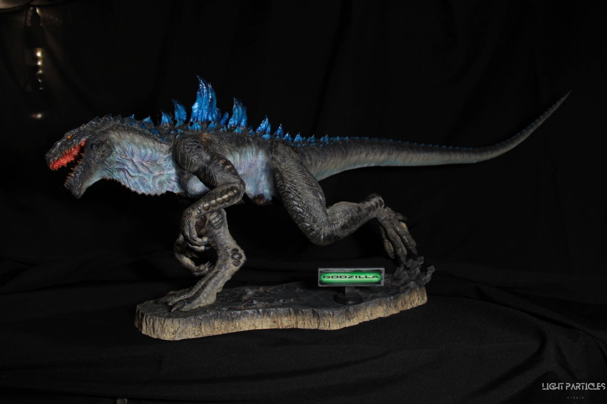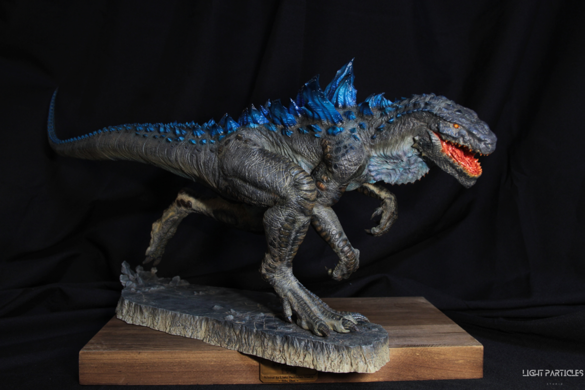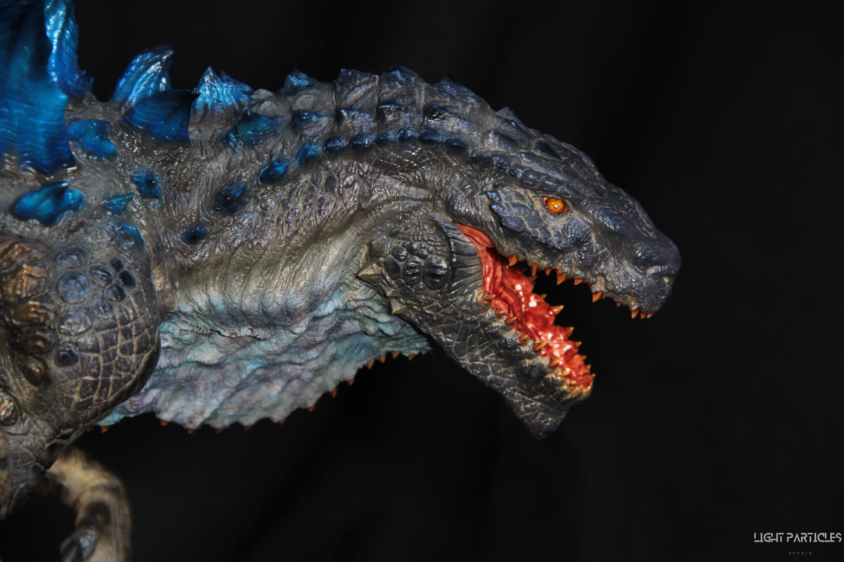 這部電影在我小時候上映,當時對長得像恐龍的生物非常著迷,對電影中的酷斯拉表現沒有太多想法,長大後才知道這部電影當時的評價非常慘。隨著時間的推移,慢慢地喜歡上酷斯拉的生物感。這組由田中健一老師雕塑的酷斯拉就被我買回來了,沒有為了空間而改變尾巴的直線設計,讓這組套件長度來到65公分。奔跑的動作感設計再加上一組地台作搭配,讓整體展示性更加。塗裝部分參考大量照片以及作例,最終塗裝效果以這組照片呈現。搭配設計的銘牌,電影logo以及木製底座讓展示效果更有彈性且完整,希望大家喜歡~