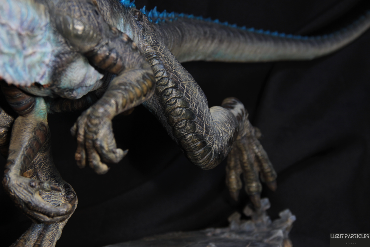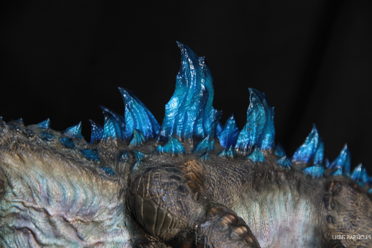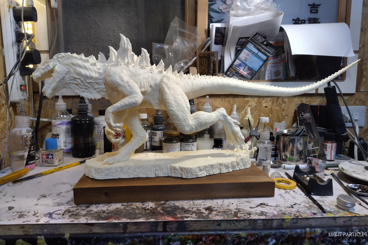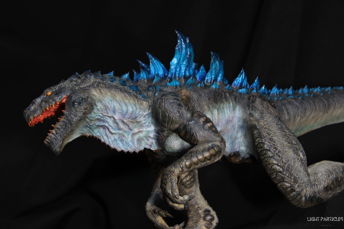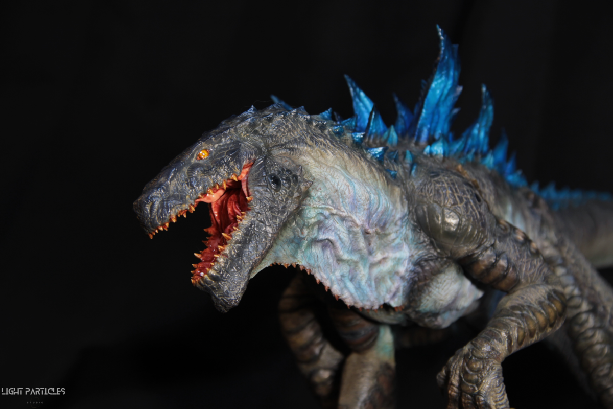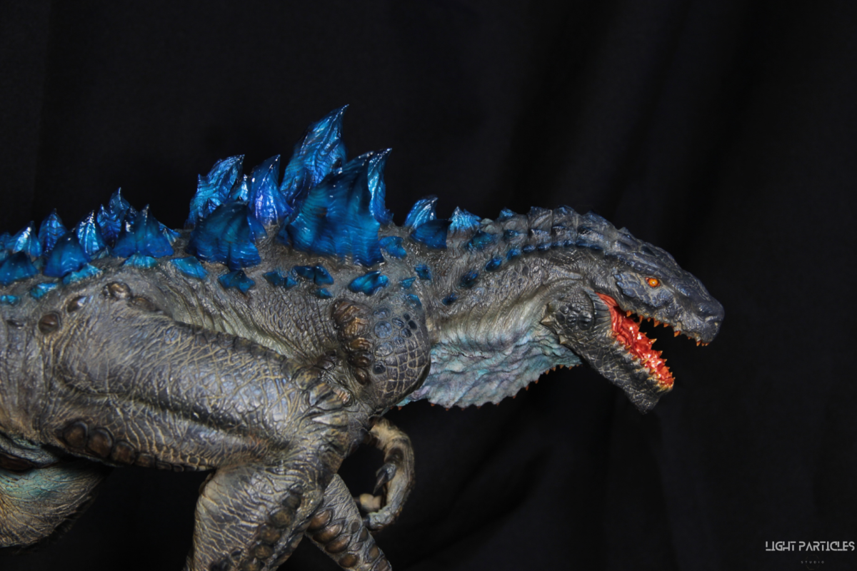 這部電影在我小時候上映,當時對長得像恐龍的生物非常著迷,對電影中的酷斯拉表現沒有太多想法,長大後才知道這部電影當時的評價非常慘。隨著時間的推移,慢慢地喜歡上酷斯拉的生物感。這組由田中健一老師雕塑的酷斯拉就被我買回來了,沒有為了空間而改變尾巴的直線設計,讓這組套件長度來到65公分。奔跑的動作感設計再加上一組地台作搭配,讓整體展示性更加。塗裝部分參考大量照片以及作例,最終塗裝效果以這組照片呈現。搭配設計的銘牌,電影logo以及木製底座讓展示效果更有彈性且完整,希望大家喜歡~