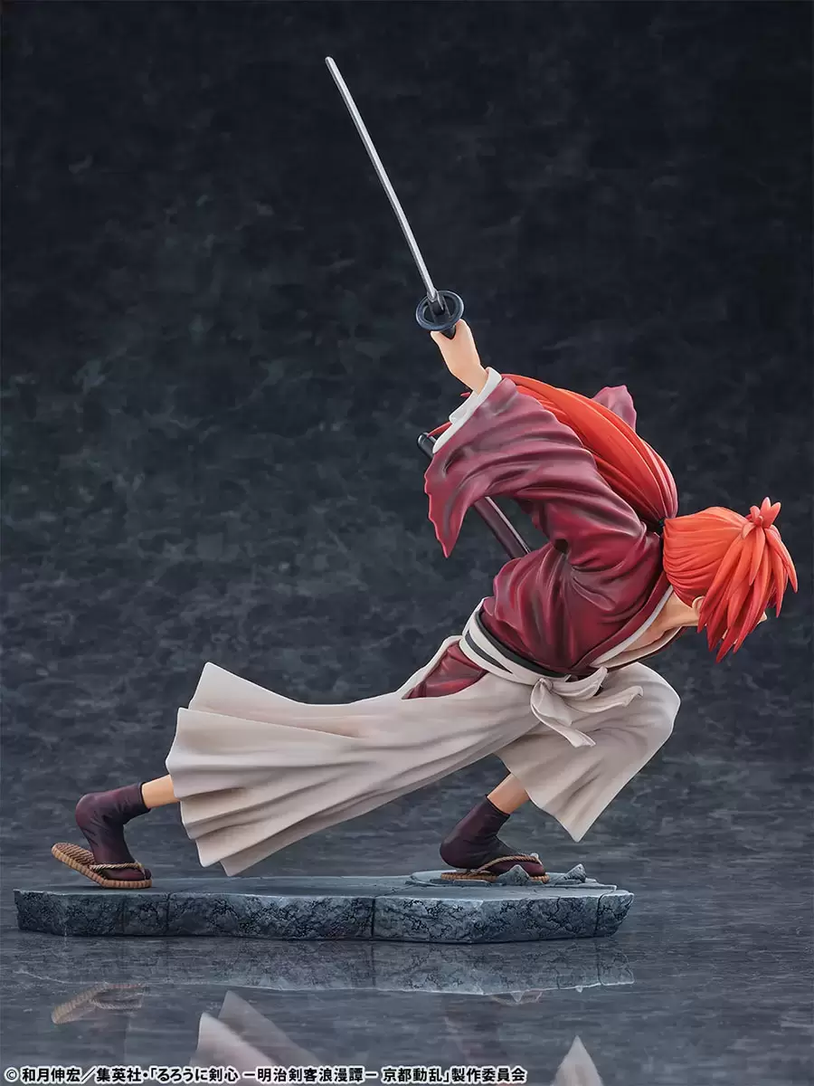 本作高約 25.5 公分,採用高品質 polystone 為材質製作,並請到原作者和月伸宏老師進行監修,將使出飛天御劍流最終奧義「天翔龍閃」的劍心考究再現。從猛烈揮舞的上揚刀勢、形塑出飛揚動感與速度感的和服、壓低的躍動身姿,以及那最重要、必須要猛力踏出才足以順利施展奧義的「左腳」皆充分還原。並在紅色長髮、肌膚、服裝、岩石質感底座等處施以陰影塗裝,讓整體展現出厚重的視覺效果,加上逆刃刀的細節、自上方能明顯看到的底座裂痕,帥到不行!