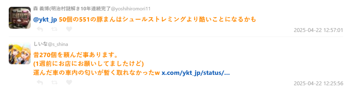 不過事實上,因為「551蓬萊」在日本關西地區頗富盛名,不少觀光客、外地人搭新幹線或搭飛機離開前,都會一次大量採購當伴手禮,甚至有網友分享,「搭車前問親友要不要買,結果對方說:幫我帶6盒10顆裝的,50顆有時候還不夠呢。」