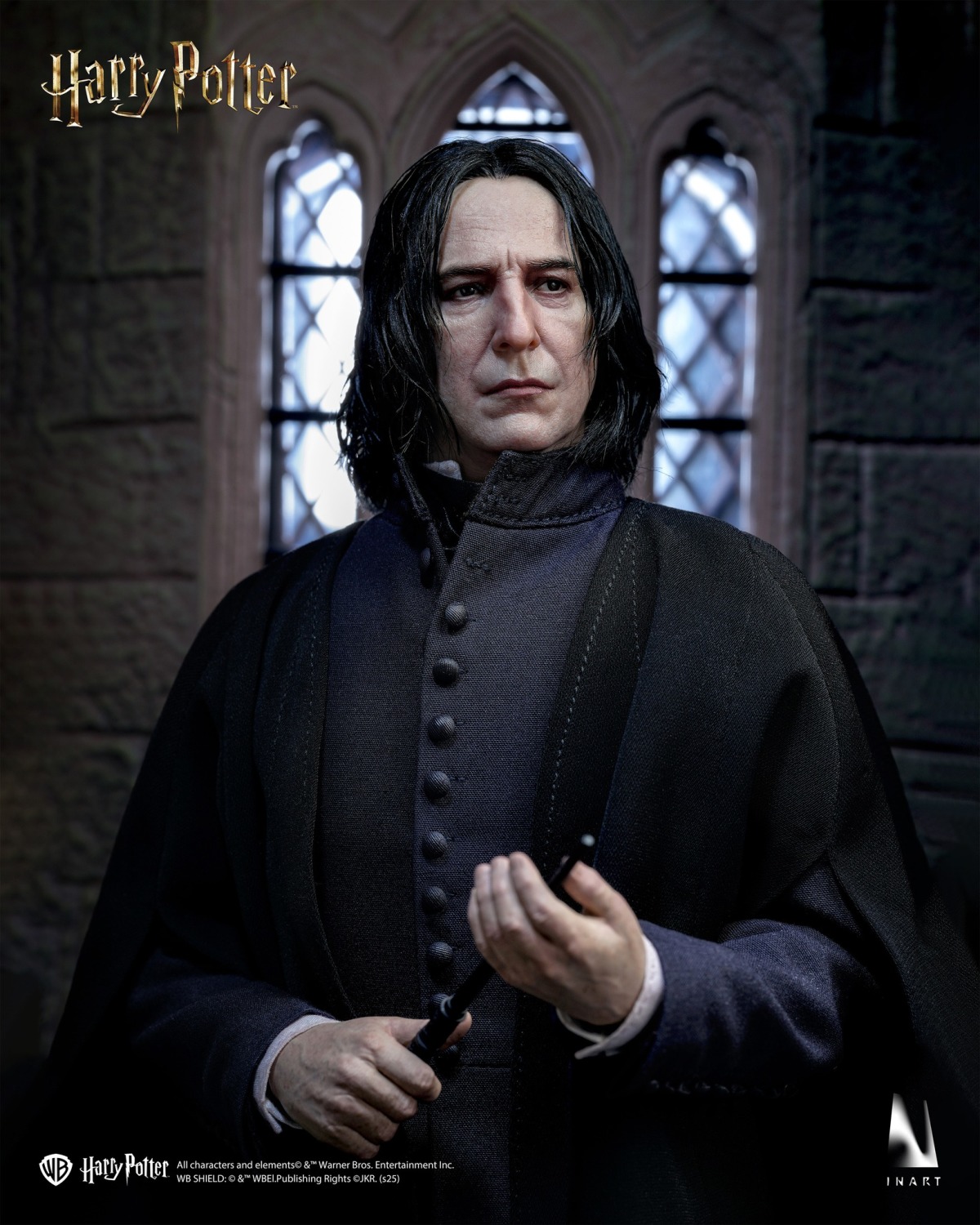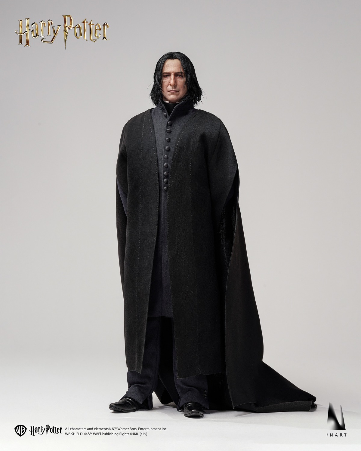 「INART 賽佛勒斯·石內卜」1/6 比例收藏級人偶,以頂尖的專業水準製作,用機近完美的細節再現這位深不可測的教授—極為逼真地刻畫出演員艾倫·瑞克曼(Alan Rickman)陰鬱且神祕的神態。使用頂級矽膠重塑真實的皮膚皺紋;植入擬真玻璃眼珠,漆黑的眼珠與緊皺的眉頭,藏著深不見底的秘密。睫毛與油膩膩的頭髮更是一根細緻紮根,營造出自然且逼真的質感。