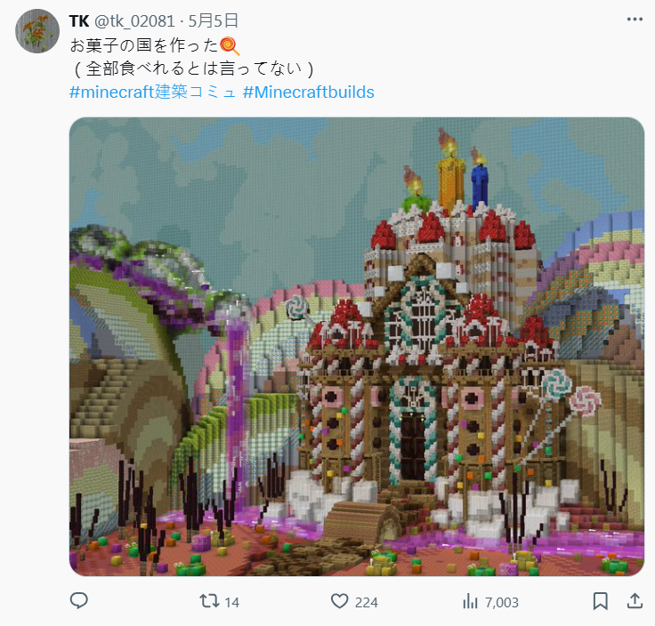 近日日本 X 上一位推主TK(@tk_02081)分享在麥塊裡作出了一棟讓人「看到會頭暈」的奇妙建築,頗具玩味的創意立刻引發討論:「這真的用麥塊蓋的?!」、「完全看不懂欸,也太猛了吧!」。