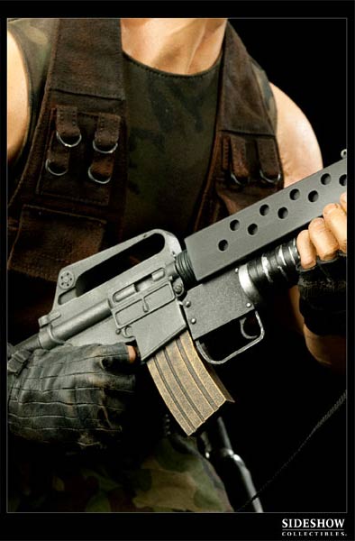 Sideshow 即將開放預購最新的終極戰士 達奇少校 Premium Format 雕像,在Sideshow 傾注了最高技術力的Premium Format 雕像系列中,我們可以留意到有別於以往的雕像,Premium Format 開始使用大量的布製材質以及其它素材來製作,表現出更高一個層次的真實感,不論是迷彩上衣、戰術背心、腰帶、迷彩褲或刀鞘都更加的講究細節與真實度,地台上熱帶叢林植物,泥濘的泥巴地也製作的相當逼真。