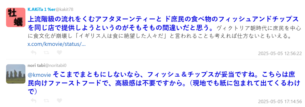 另有網友將問題指向英國館本身的定位失準:「下午茶這種上流文化的象徵,卻和庶民代表的炸魚薯條擺在一起賣,本來就很怪。這種混搭根本是文化災難。」