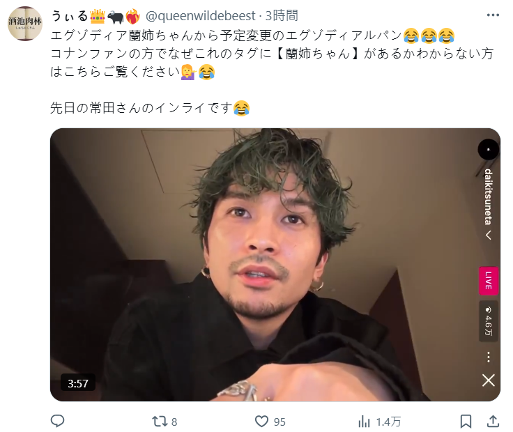 馬上就有人想到,先前主唱與吉他手的常田大希在個人 Instagram 上開直播,就提到井口理提出了「艾克索迪亞小蘭姐姐 」( エグゾディア蘭姉ちゃん ) 的 idea,看來應該是這個無誤 ( ? )。