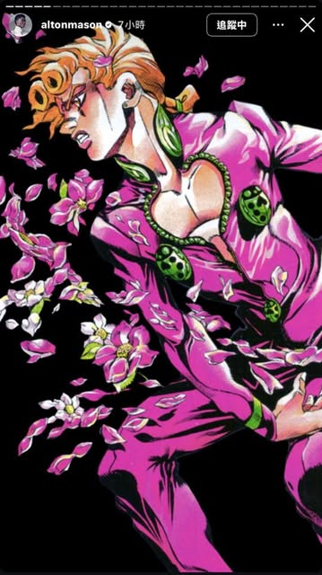 他在個人 Instagram 限時動態上發布喬魯諾・喬巴拿的插圖外,也親自表示:「自己就是喬魯諾的粉絲,所以特別想把那個經典的心型剪裁設計做成我的造型。」