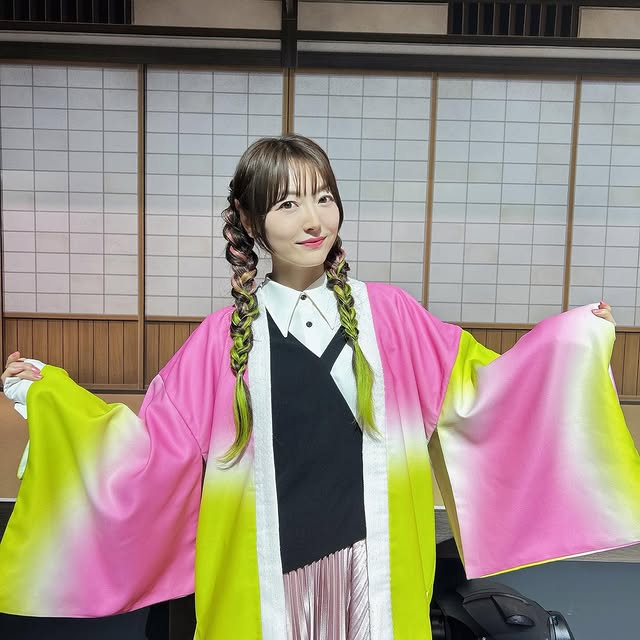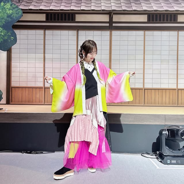 會有這個造型,是因為 5 月 4 日她參加了在橫濱舉辦的《鬼滅之刃》活動「鬼滅の宴-柱稽古編-」,宣傳近期重新上映的特別剪輯版。