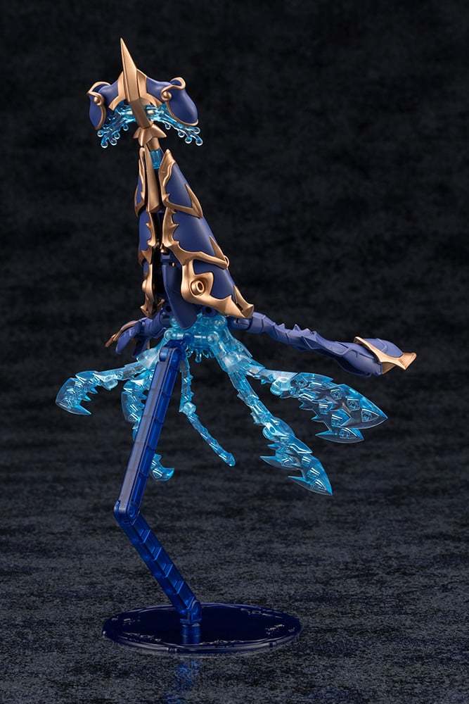 第二彈「Trickle Decapodia」是彷彿魷魚的水屬性奇幻生物,在「怪獸模式」下擁有全高約 20.9 公分的尺寸,運用豐富的藍色透明零件表現帶有鉤爪的觸手,並能透過各部可動機構把玩出游動、攻擊的姿勢。