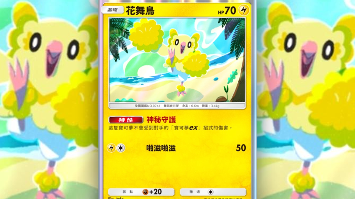 ▼ 《Pokémon Trading Card Game Pocket》中「啪嗒啪嗒姿態」的花舞鳥因為免疫所有 EX 寶可夢傷害,近期也成為話題。