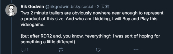 儘管如此,Godwin也承認兩支預告片,可能無法完整展現這款大型遊戲的真正風貌,為此他也自嘲道:「說是這樣說,但我還是會乖乖買來玩啦。」