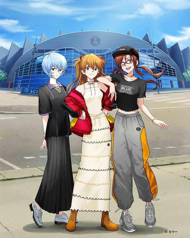 這次的聯名以「巴黎」作為共通主題,結合了《新世紀福音戰士》的獨特世界觀與 PSG 一貫的時尚運動風格。特別設計了明日香、綾波零、真希波三位角色站在 PSG 主場「王子公園體育場」前的全新插圖,打造出結合球場感與街頭潮流的唯一風格!