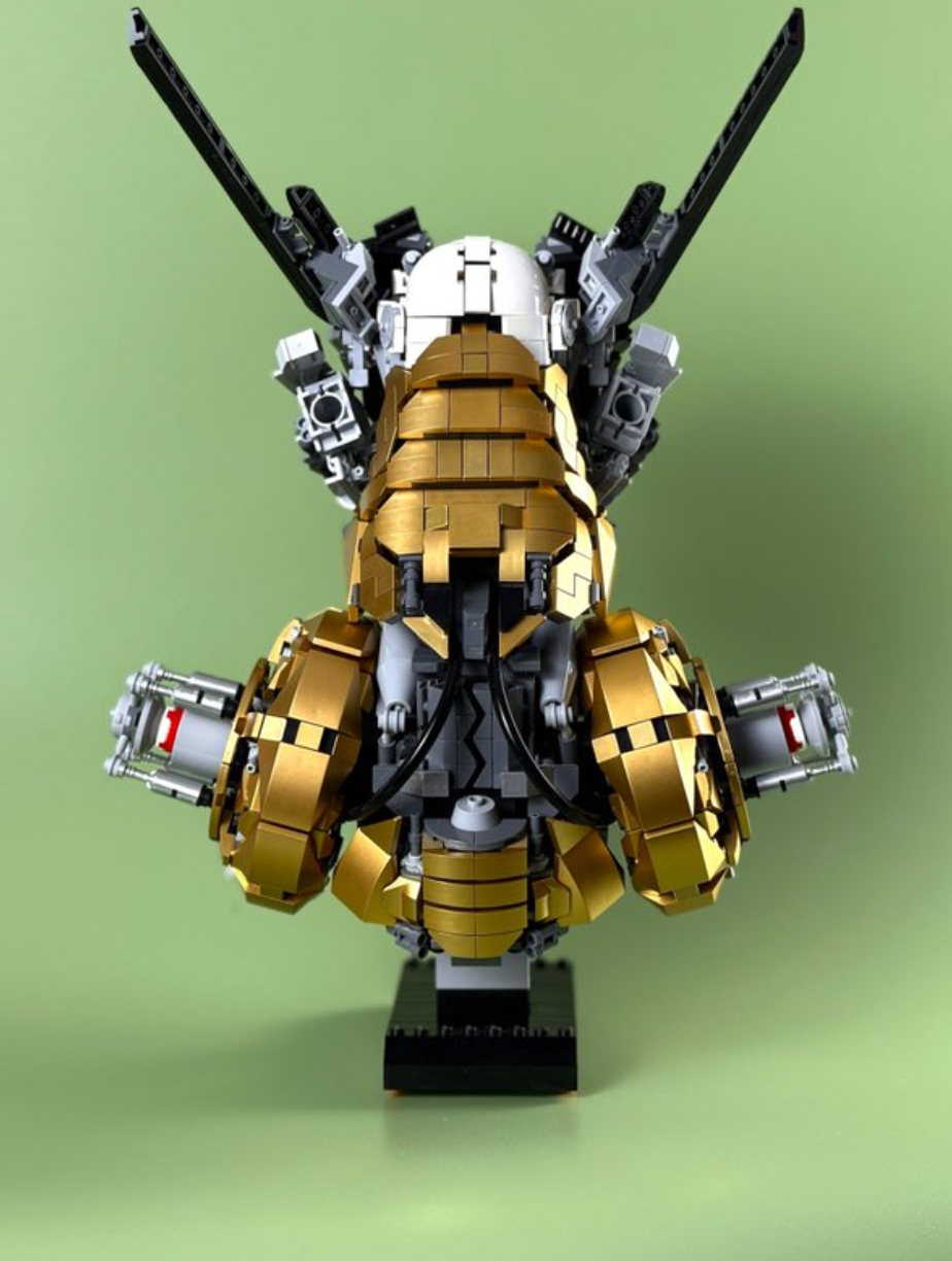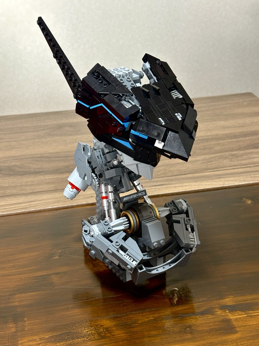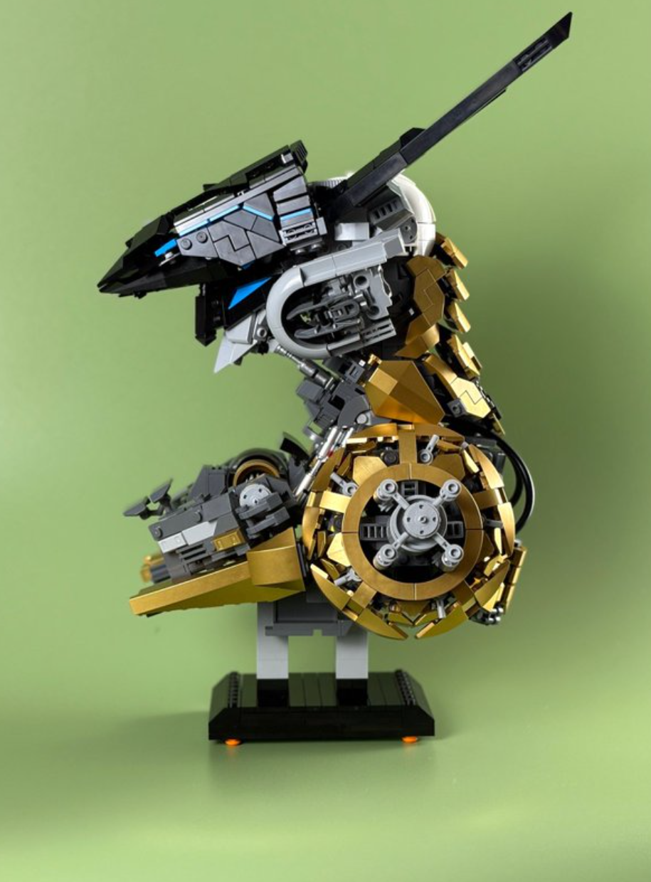 這次製作重點放在傑夫提的金屬結構,雖然只作出頭像,但基本上該還原的部分都透過樂高積木呈現,尤其是獨特的頭部造型與機械內構。整體高度大約 35 公分,重量差不多 1 公斤,是個蠻有份量的作品!