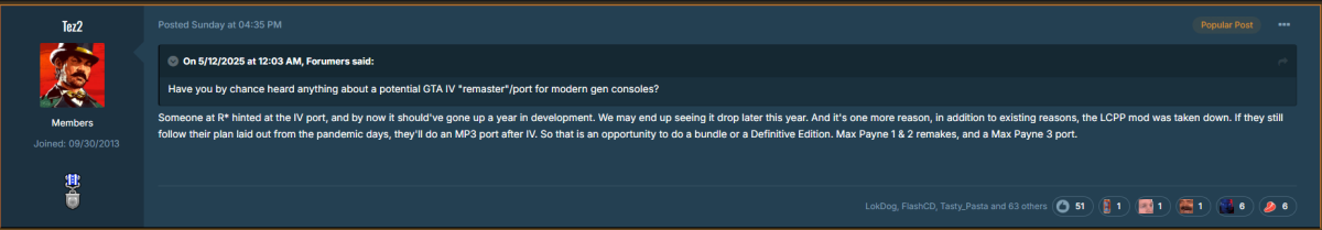 Tez2 在 GTA 論壇指出,一位來自 R 星的內部人士曾暗示《俠盜獵車手4》的移植版早在一年前就已進入開發階段。