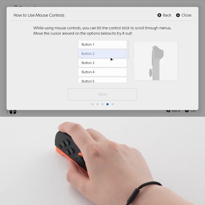 除了基本移動功能外,右類比搖桿在滑鼠模式下亦能模擬滾輪操作,讓玩家像使用電腦滑鼠般進行上下捲動。Switch 2 的左右兩支 Joy-Con 2 均支援滑鼠操作,並在側邊配備光學感應器,進一步拓展互動可能性。