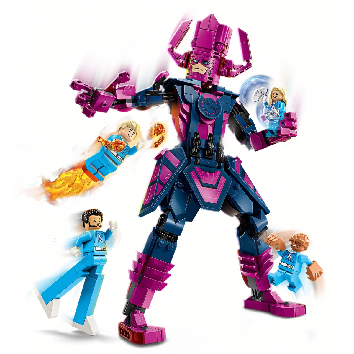 本作一共有 427 片零件,組完之後能獲得一個高約 28 公分、充分再現其頭盔與服裝特色的行星吞噬者磚拼人偶(Construction Figure)以及 LEGO 官方首度商品化的驚奇4超人人偶。行星吞噬者本體在多處皆配置了球型關節,可動手指還能讓他呈現出抓住驚奇4超人成員的樣貌,背後則設有十字插銷孔,能安裝上透明零件讓英雄人偶展現飛行能力。