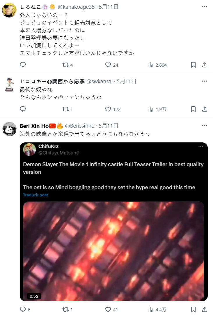 雖說沒有明確抓到犯罪的民眾,不過不少日本網友質疑為海外粉絲所為,希望官方可以嚴正執行讓這些惡質觀眾受到懲罰。