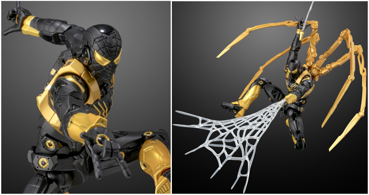 「Fighting Armor 鋼鐵蜘蛛(ONYX STEALTH TECH Ver.)」,以先前販售的「鋼鐵蜘蛛」為基礎,並採用《邪惡六人組重生 Sinister Six Reborn》的設計,在蜘蛛人經典的戰服中注入黑金配色以及大量的金邊元素,合金材質的使用更讓整體呈現出堅實的厚重質感,背後的蜘蛛鋼爪更顯霸氣十足!可動設計追求有如人體的關節位置,能自然地擺出逼真的動作,讓盔甲俐落而不會有笨重感!透過附帶支架與蜘蛛絲特效件等,賞玩動感戰鬥場景~