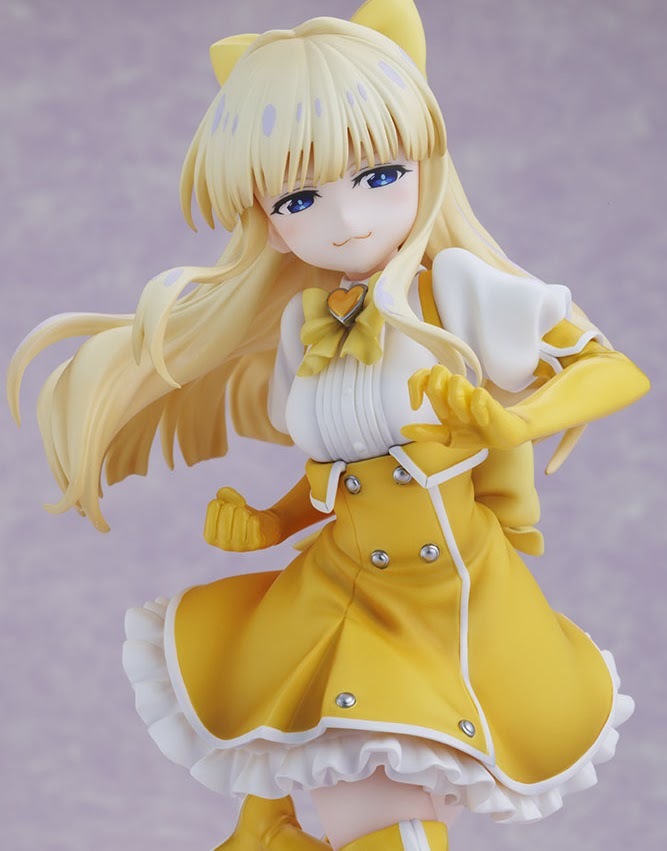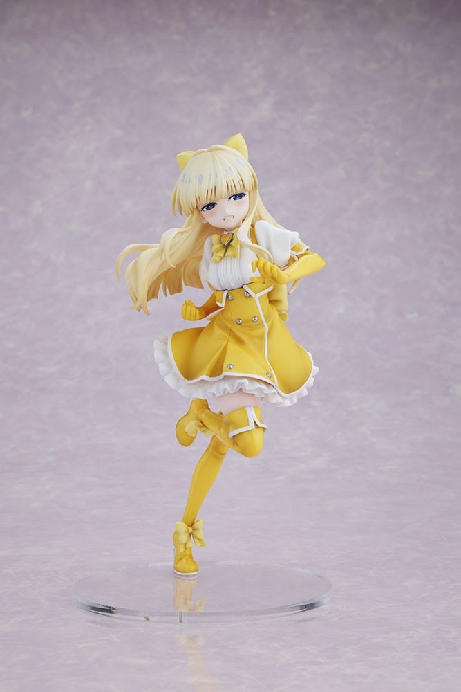 「瑪吉雅硫磺」1/7 比例模型,尺寸約高 220 mm,以特別繪製的插畫為基礎,將充滿戰鬥力的瑪吉雅硫磺立體化~臉上維持著從容又可愛的貓貓嘴笑容,即使是舉起拳頭的姿態也看起來十分優雅。黃色的魔法少女服隨著向前傾身的姿勢而揚起,荷葉澎澎裙、大蝴蝶結與金黃色的髮絲充滿動態感;手套與長靴透過塗裝強調不同質感。另外附有特殊的身體零件,可以欣賞爆衣卻堅持戰鬥的熱血狀態。