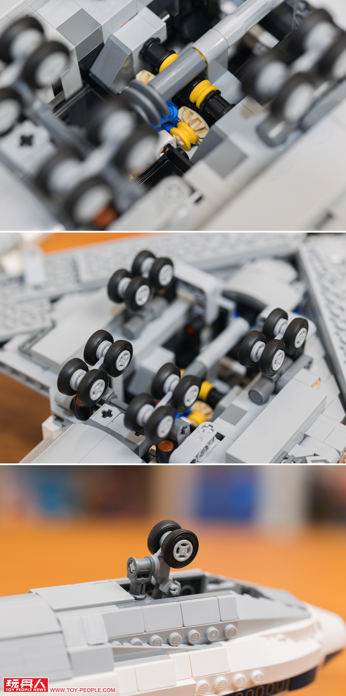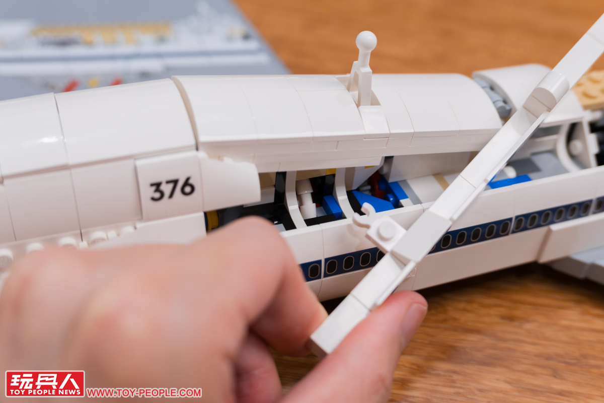 接著波音747 太空梭運輸機我們就從內部結構開始一探究竟!為了達成最大賣點之一的 18 輪起落架結構,太空梭運輸機內部的堆砌過程比小編想像中的還要有趣許多!像是這裡為什麼要特地在中間採用一個特殊零件,等等你就知道了!