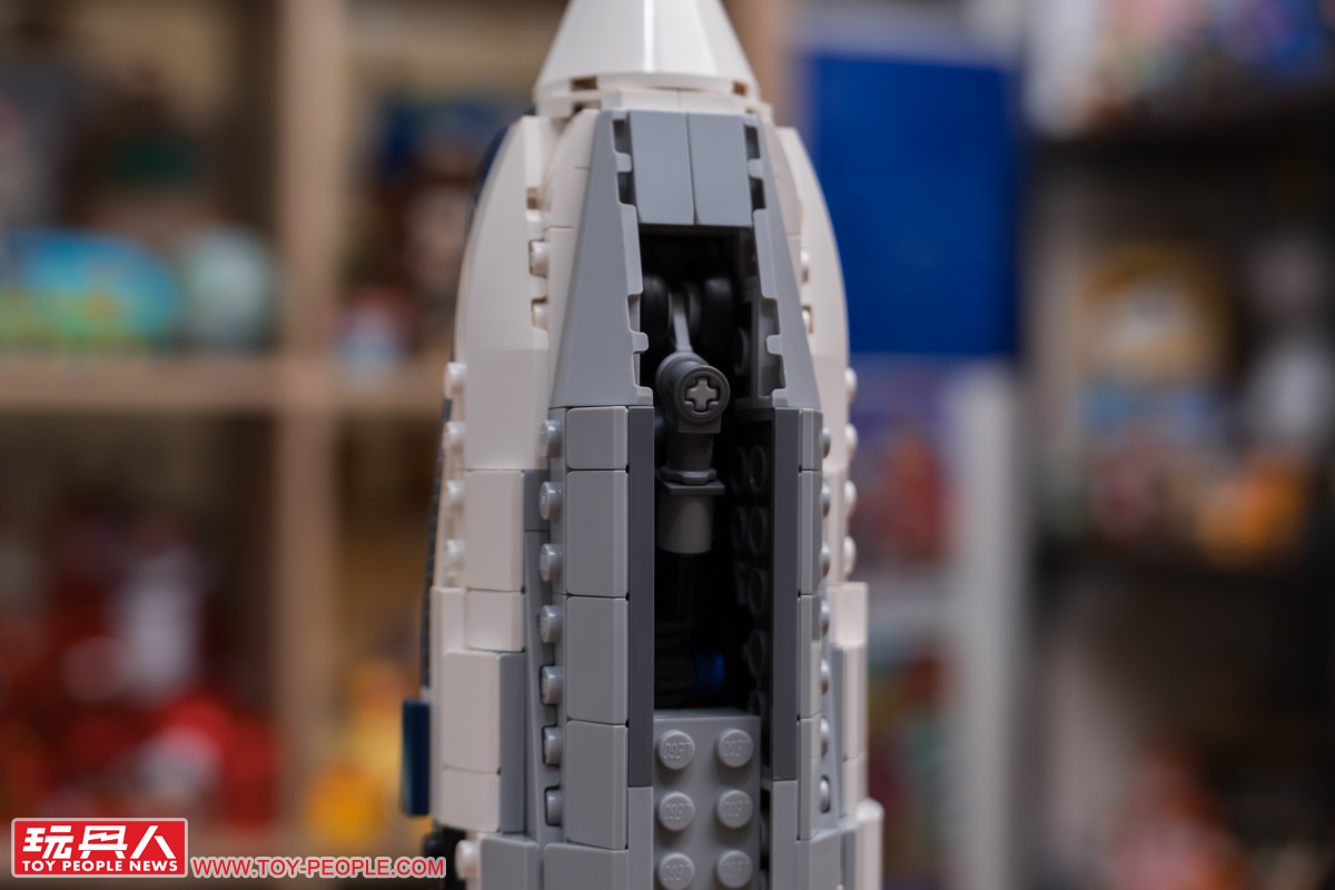 ▼ 當企業號在太空梭運輸機上頭時,噴射引擎外頭會罩上一個錐形罩,稱為尾錐(tail cone),做用是減少飛行阻力、提升空氣動力的效率;在這次的樂高模型中也有做出還原,不過是以替換零件單元的形式呈現。
