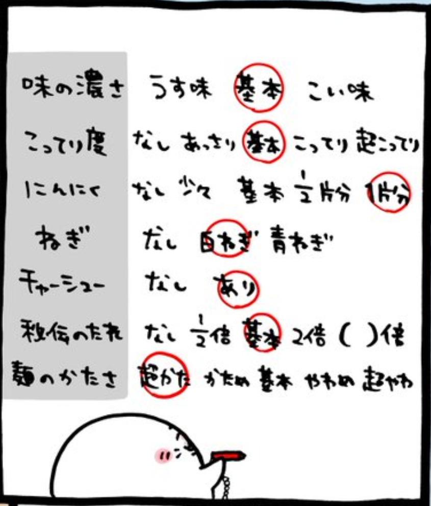 漫畫中也提到,口味濃淡 & 油濃郁度保持基本,可以享受一蘭拉麵的原始口味外,搭配一份的蒜泥還有偏硬的麵條,絕對是最棒的。
