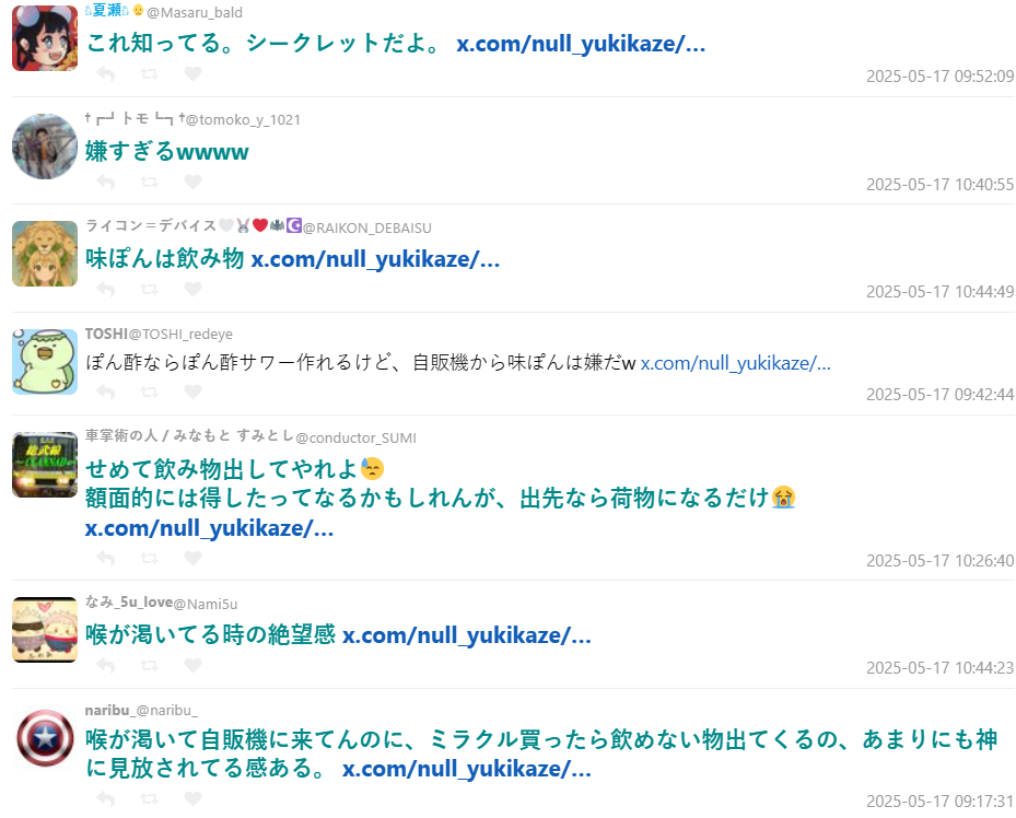 許多網友看到這則貼文後都紛紛留言表示:「味ぽん是飲料沒錯啦(才怪)」、「想喝飲料結果拿到醬料,根本被神遺棄」、「我只是想喝水啊!」。