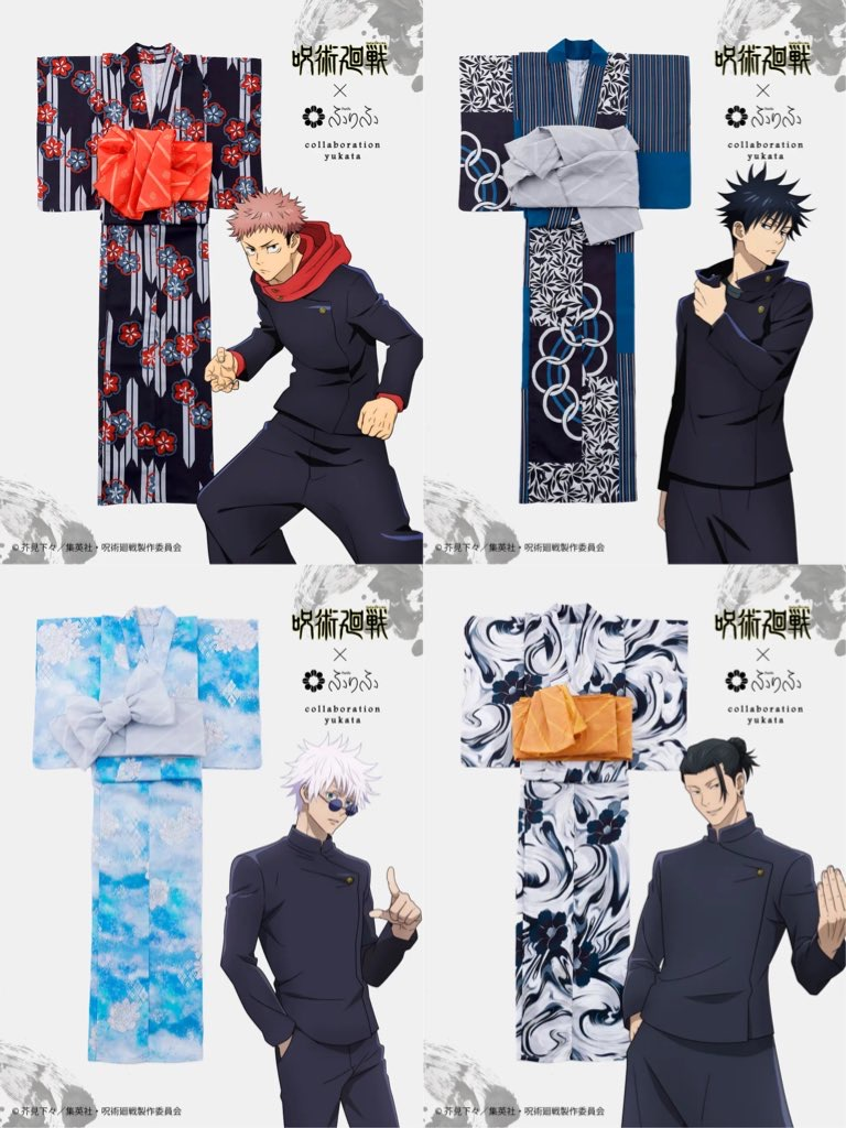 近日宣布與日本知名和服品牌「ふりふ」聯名,推出以虎杖悠仁、伏黑惠、五條悟、夏油傑為靈感設計的浴衣系列,將於 5 月 20 日起正式開賣!