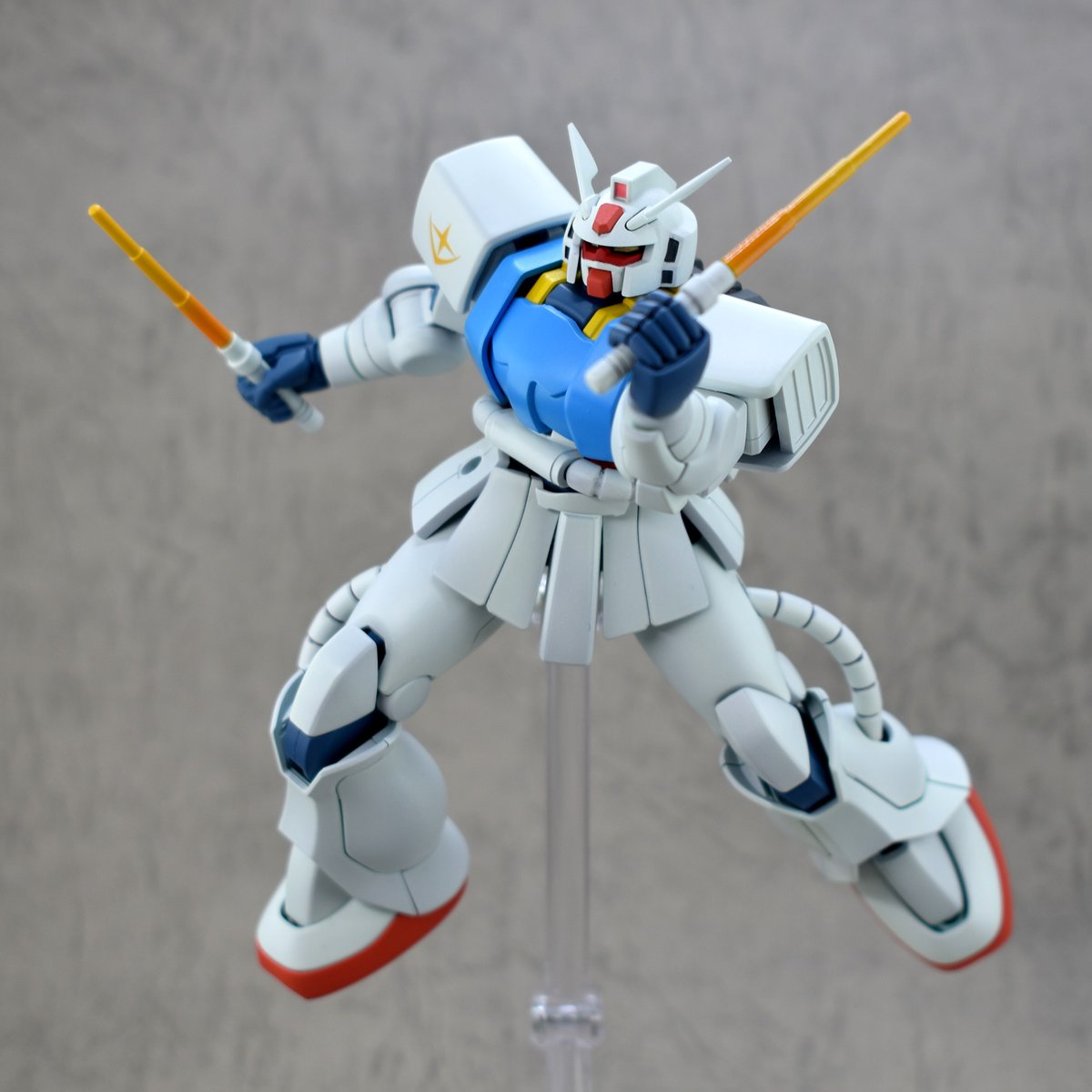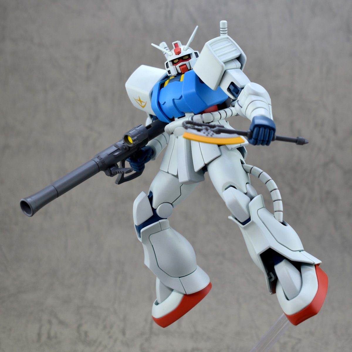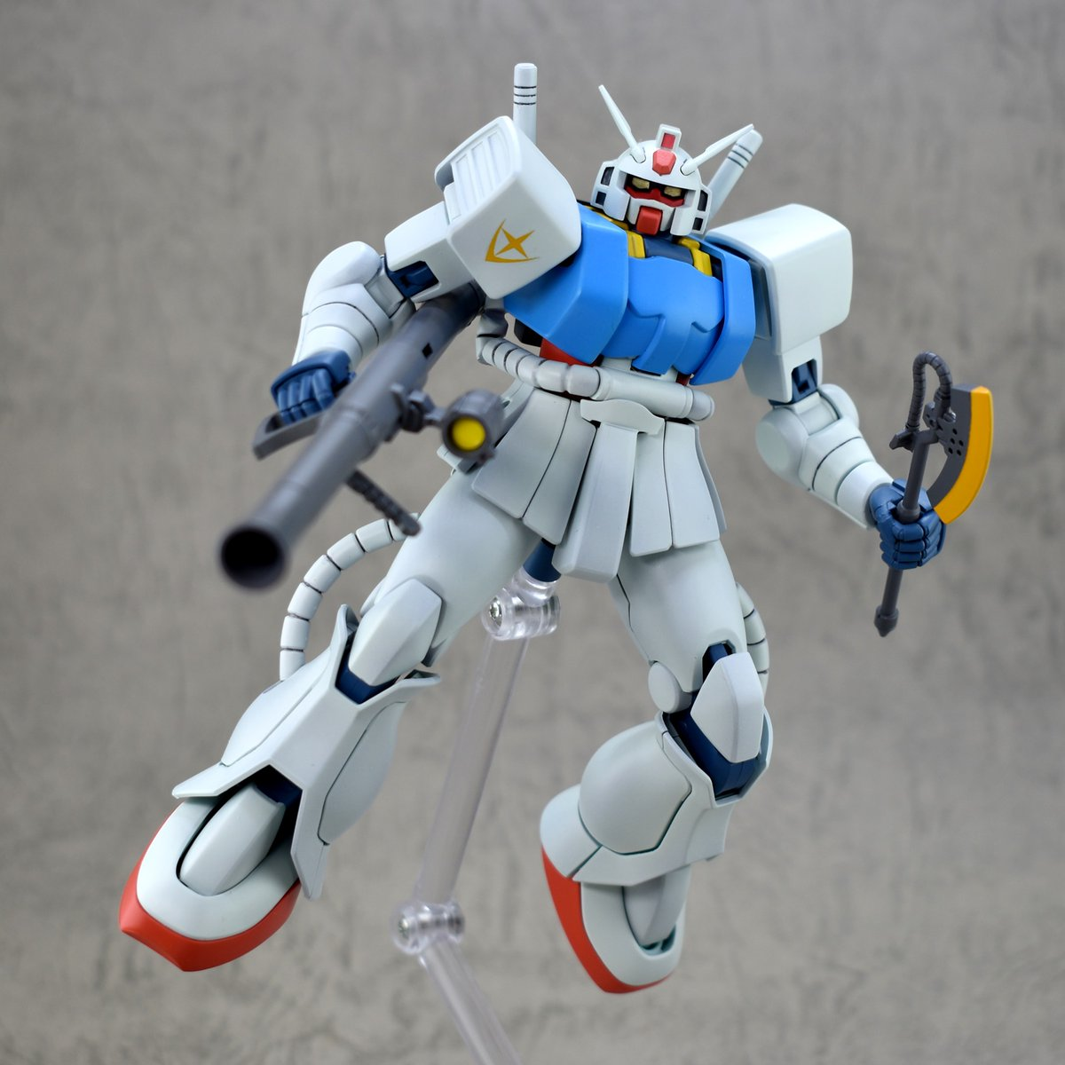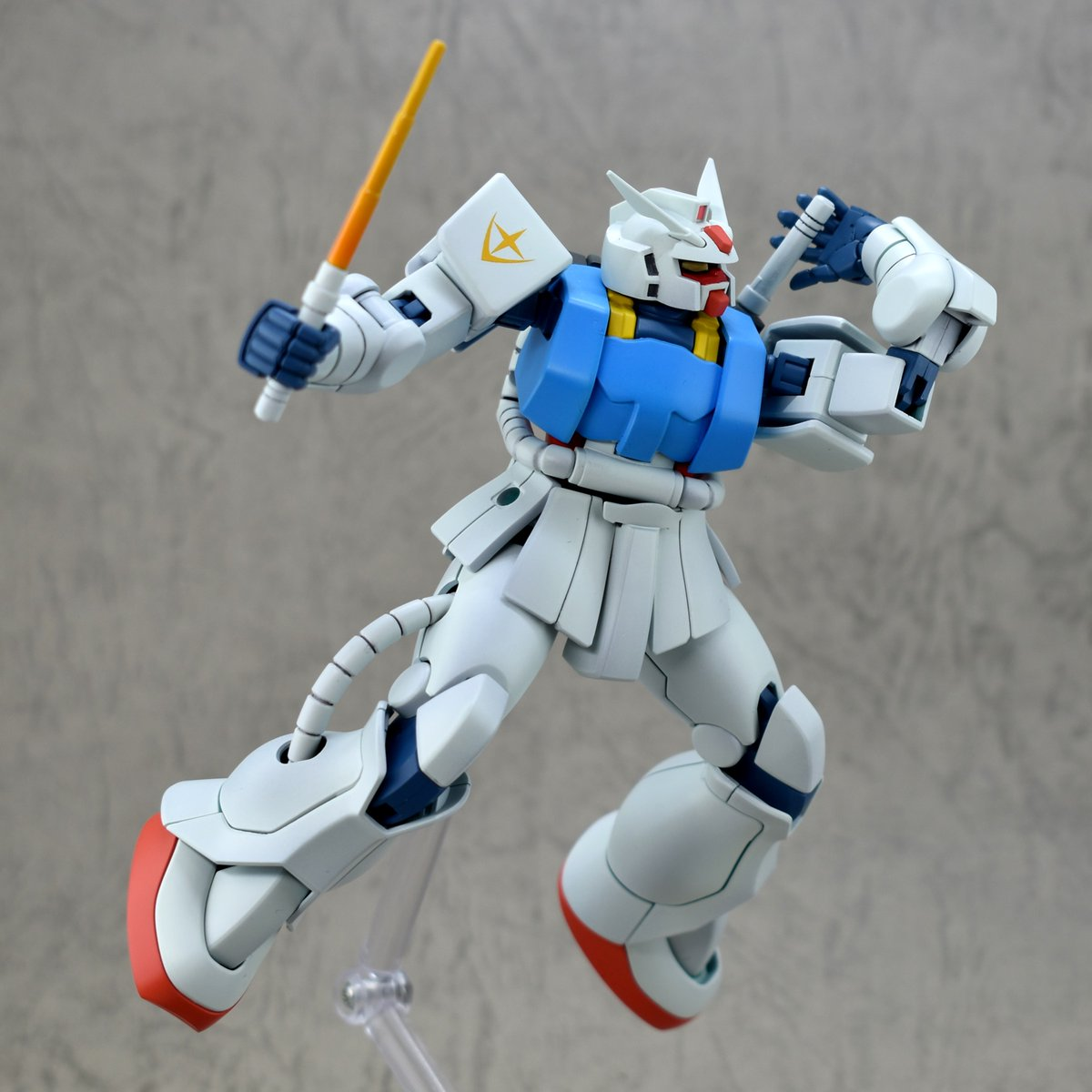 造型上,他將原本薩克的顏色塗裝成初代鋼彈的配色,他用 3D 列印重做了頭部和肩甲,替換成鋼彈的頭,肩甲上也印上聯邦軍的標誌,且考慮到薩克本身沒辦法用光束武器,他還特別做了一根「會變燙的伸縮棒,類似警棍」來代替光束軍刀,雖然只是造型上像,但也有考究應有的設定。