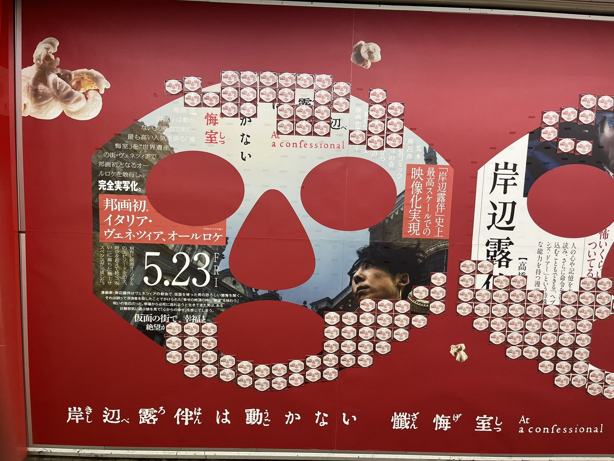 這面大型廣告設置在新宿地鐵丸之內線站內,整面牆被貼滿模擬「天堂之門(Heaven’s Door)」的便利貼,上面是由高橋一生飾演的主角「岸邊露伴」的特殊能力為主題設計,整面牆以面具造型呈現充滿魄力。